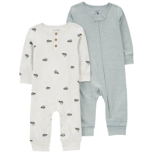 CARTERS BEBE NIÑO PIJAMA GRAY OLIVE STRIPE 2PK