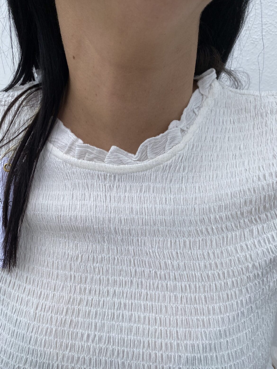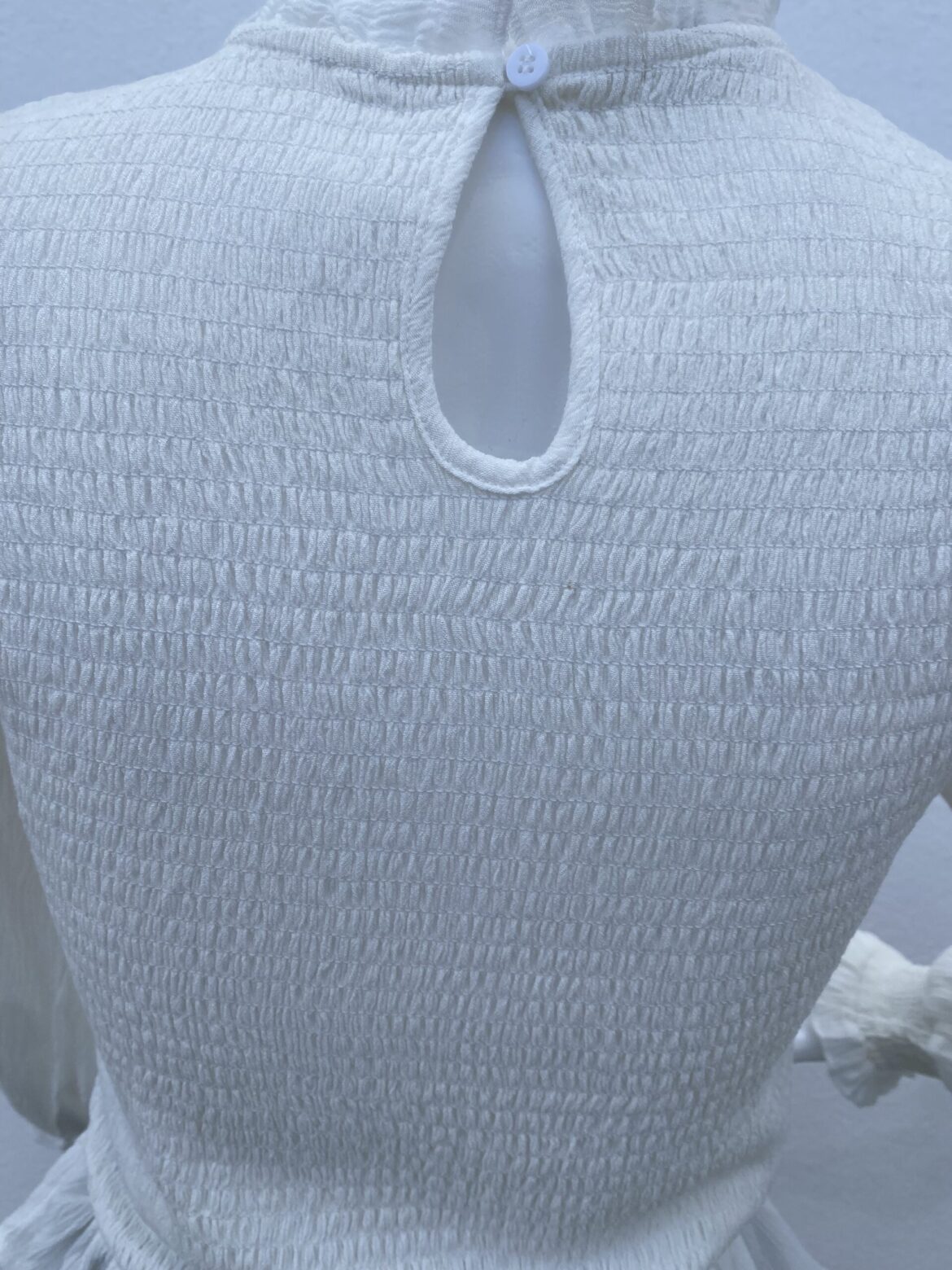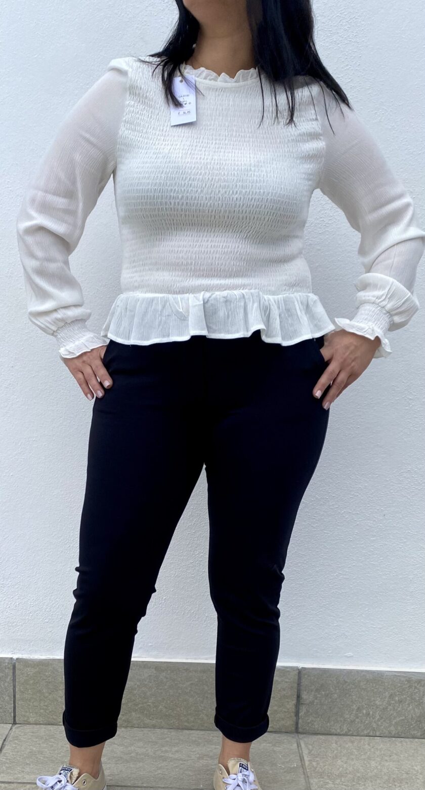 Blusa con volantes en cintura y puños en color blanca y beige, tallas M y L