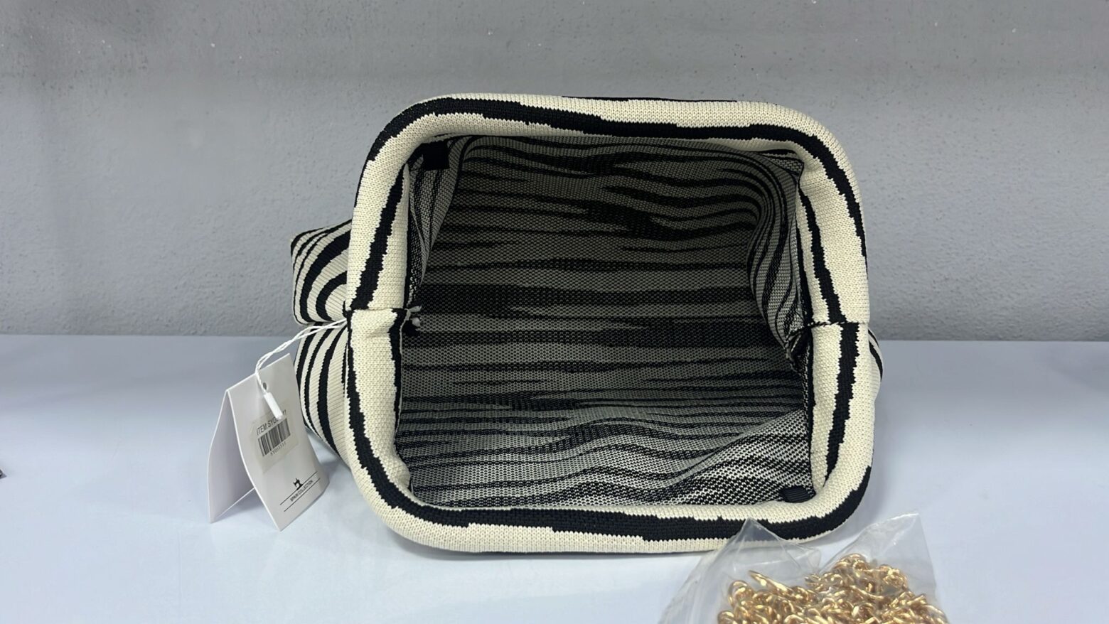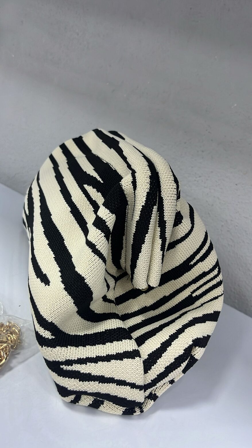 Bolso de mano de punto con estampado de cebra