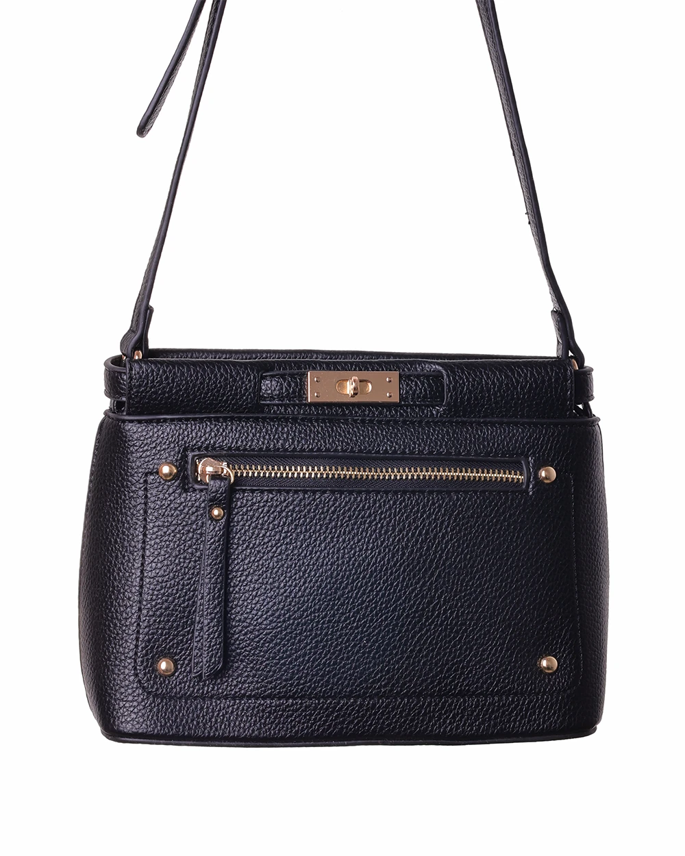 Bolso de polipiel con correa para colgar.