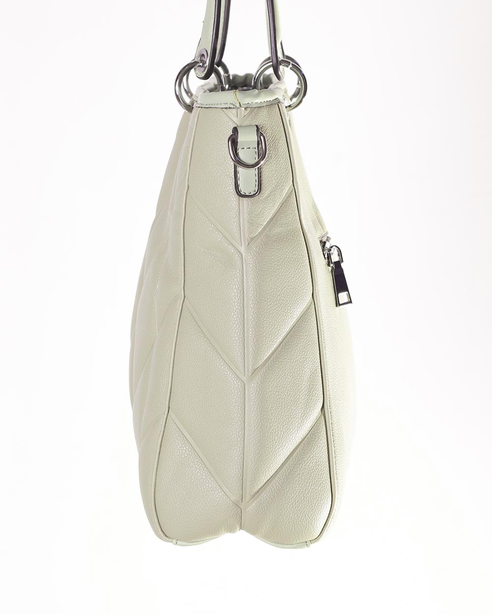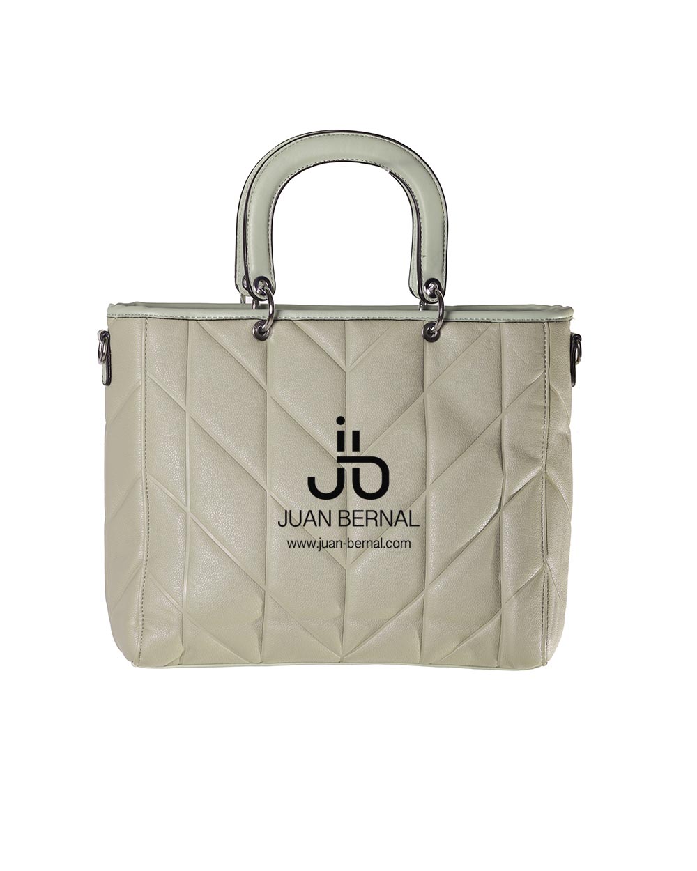 Bolso de polipiel con asas y correa para colgar.