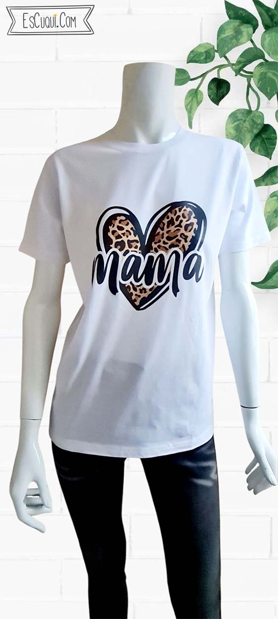 ¿Te gusta llevar camisetas iguales para madre e hija? Pues esta preciosa camiseta en color blanco con un coqueto corazón con estampado animal print de leopardo es ideal para que vayáis a juego mami e hija. ¡Mami y Mini!