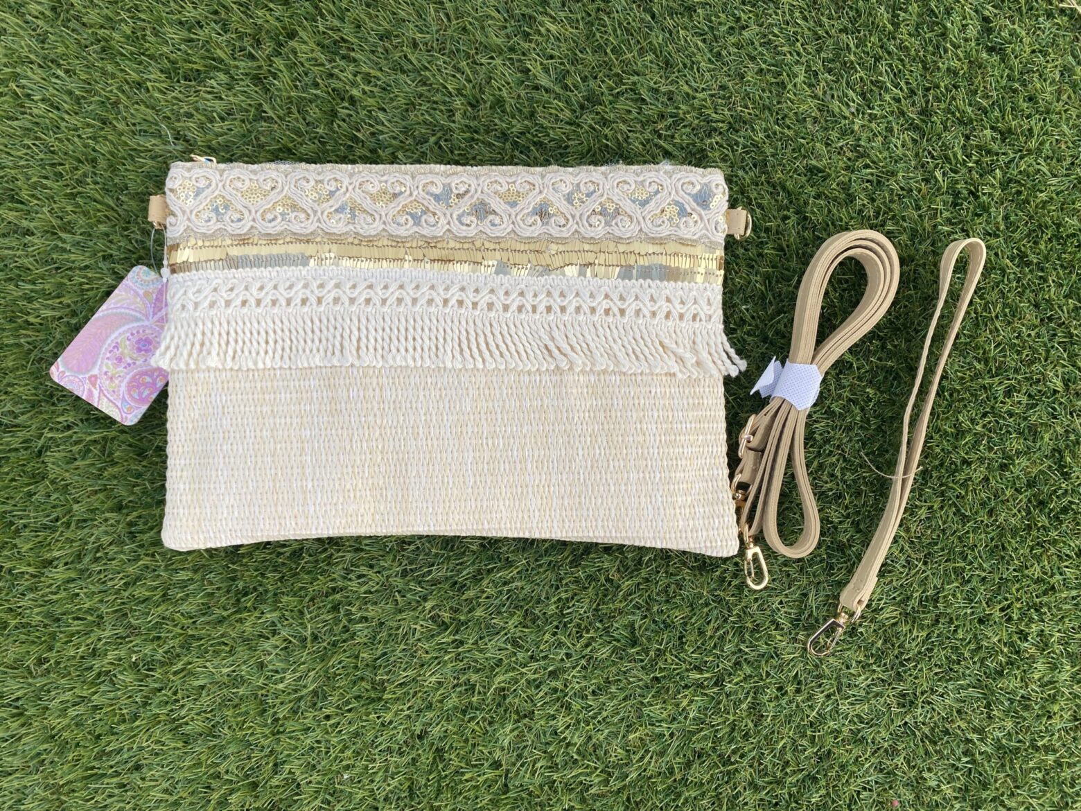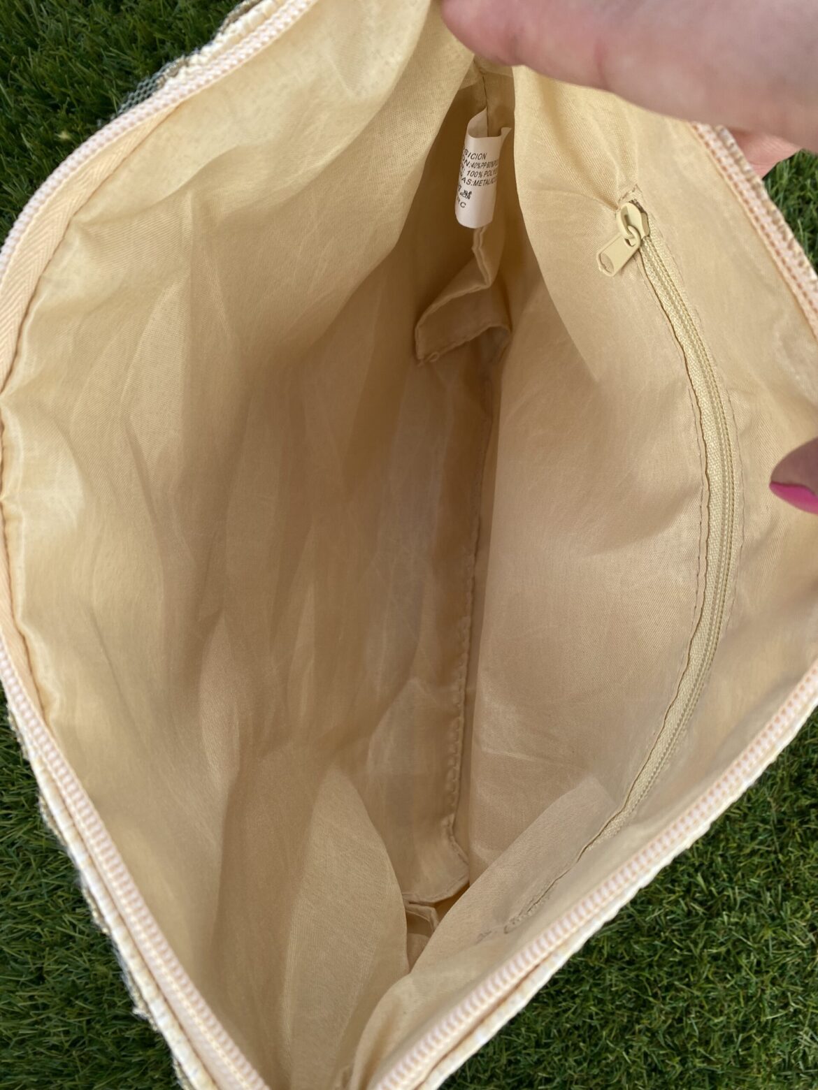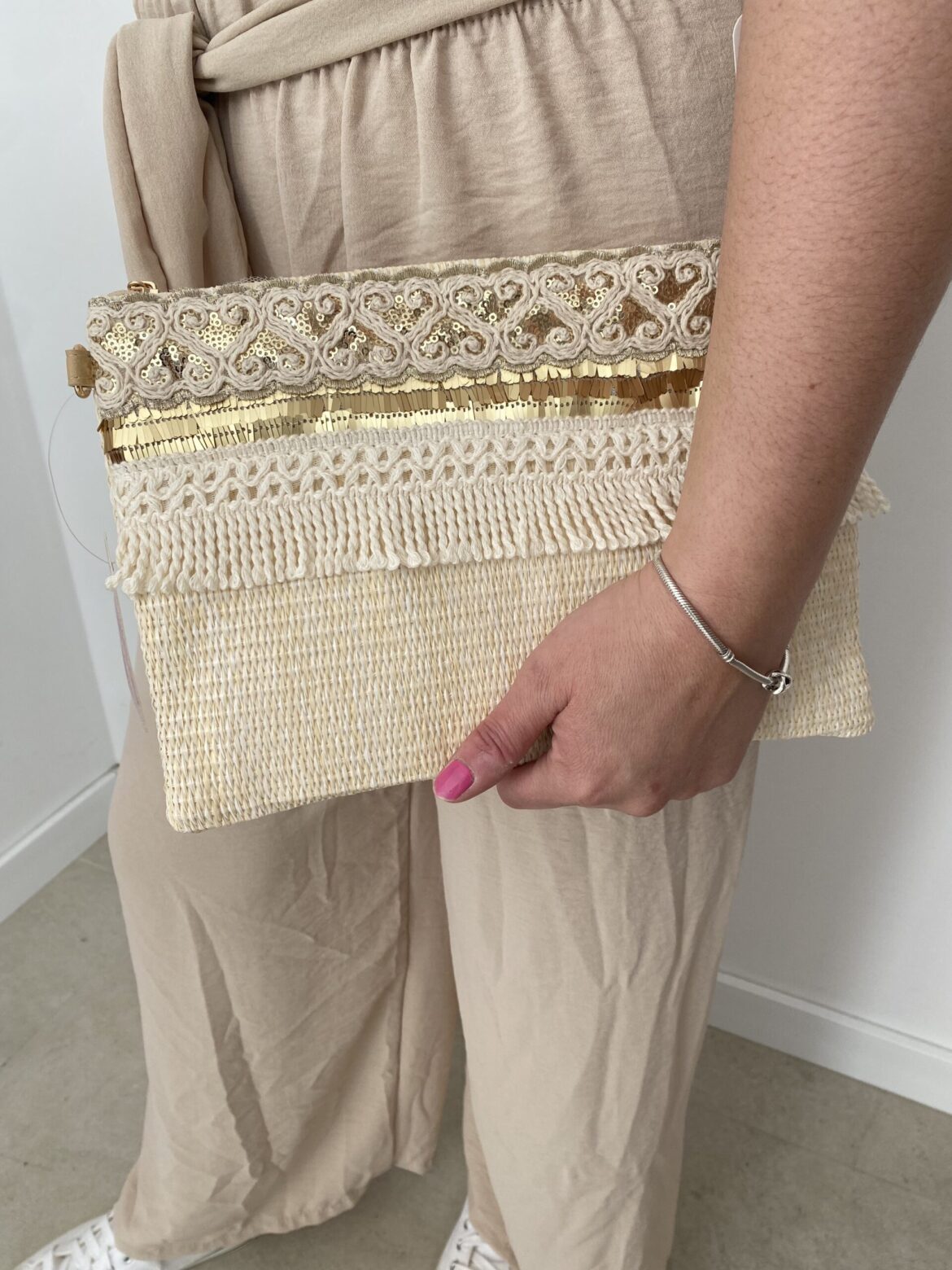 Cartera de mano de rafia en color beige con dos asas