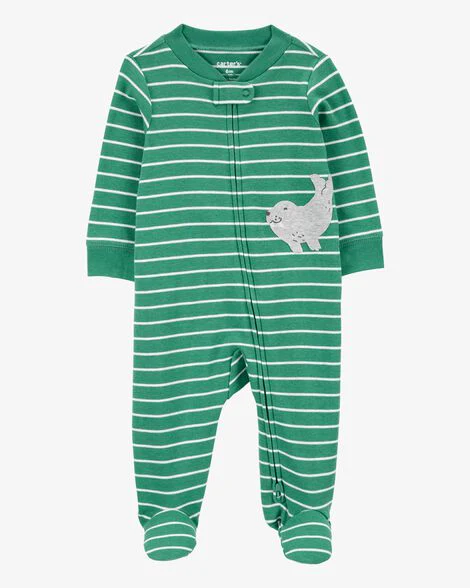 Carters Bebe Niño Pijama Stripe With Walrus Green