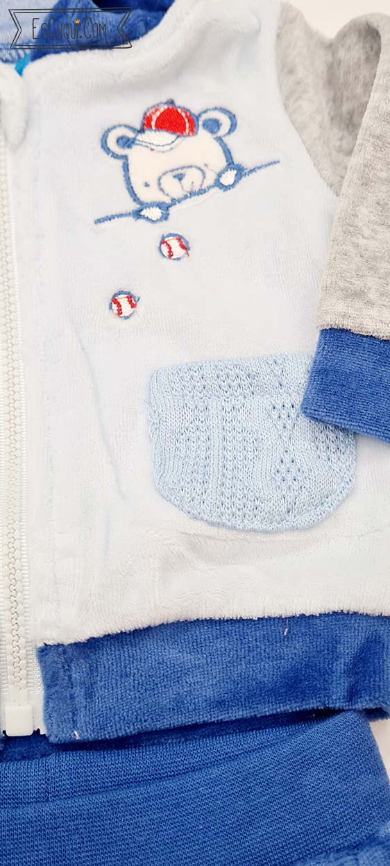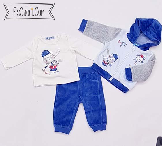 Chándal de bebé compuesto de pantalón, chaqueta con cremallera y camiseta de manga larga a juego.