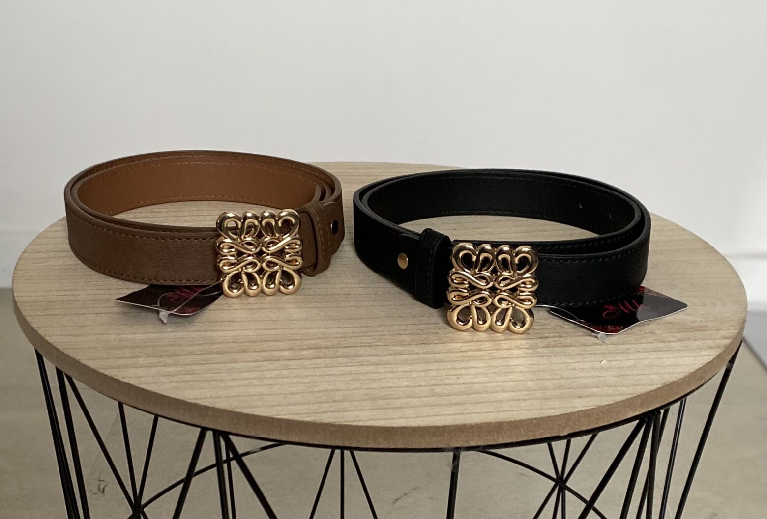Cinturón con hebilla dorada, en marrón y negro, dos medidas de 100 cm y de 110 cm