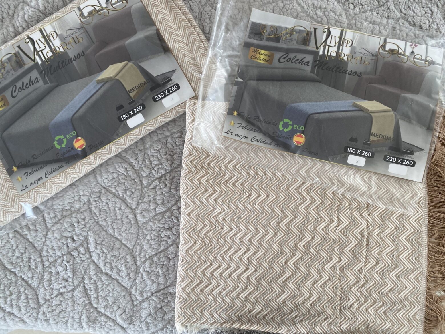 Colcha multiusos, en tonos grises y en tonos beige y en dos medidas 180×230 y 230×260