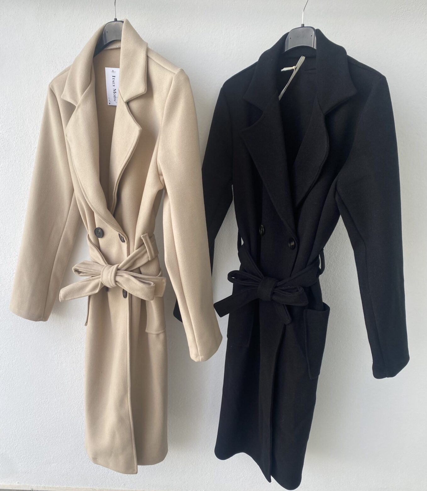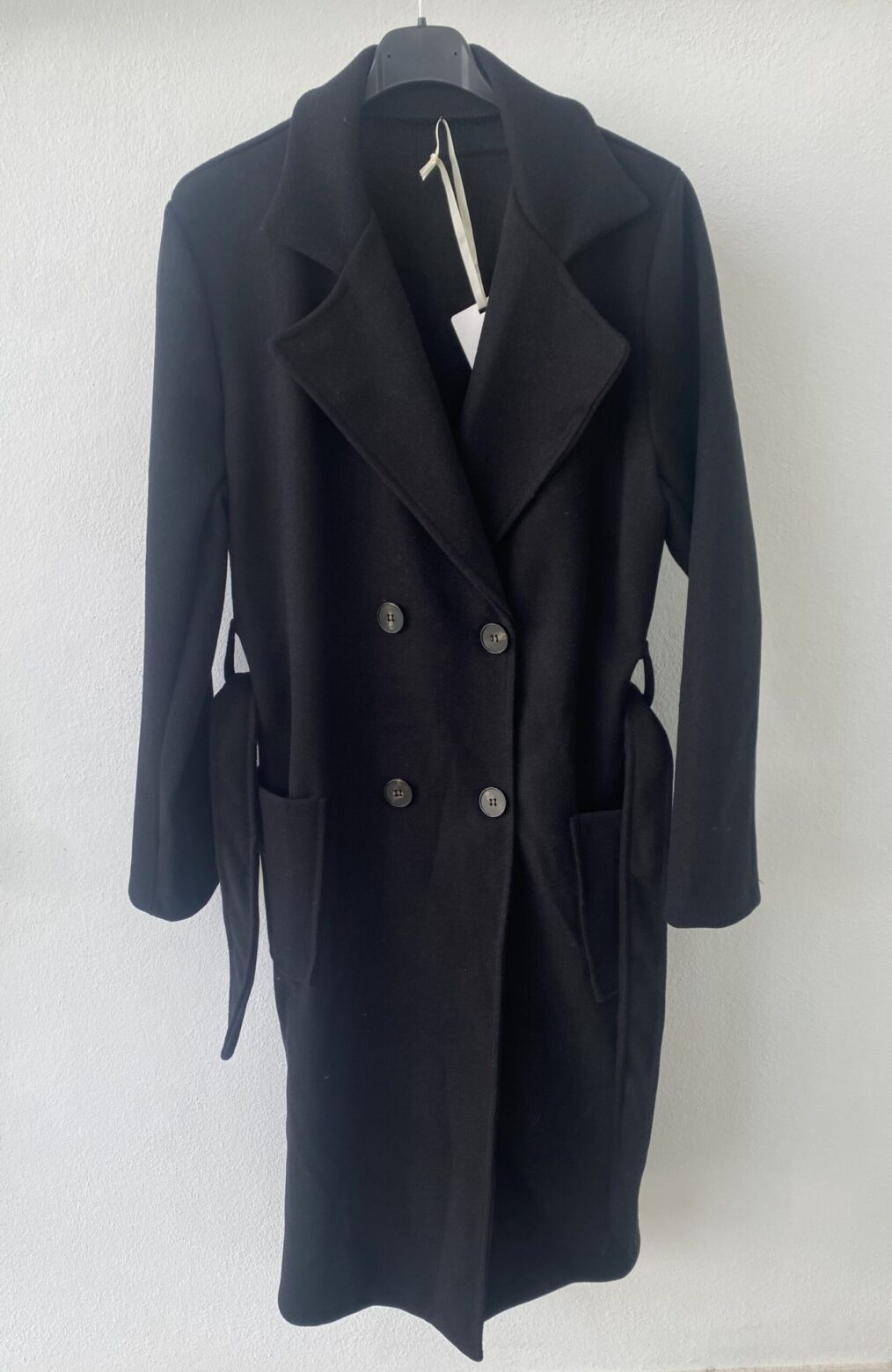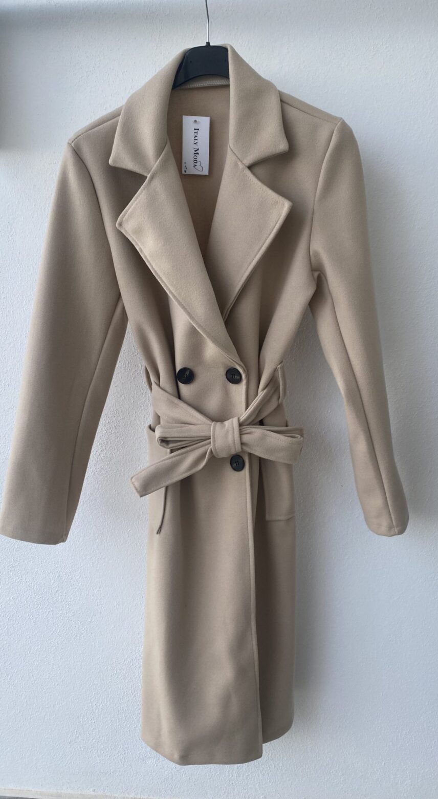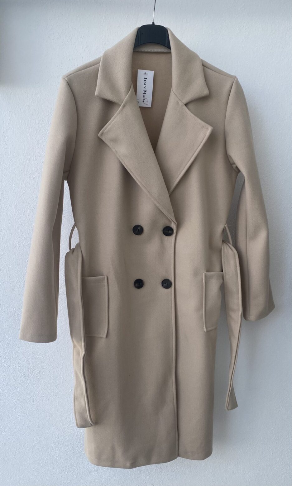Gabardina de paño, largo 3/4, disponible en negra y en beige, con botones y cinturón, talla única (da hasta una 42-44)