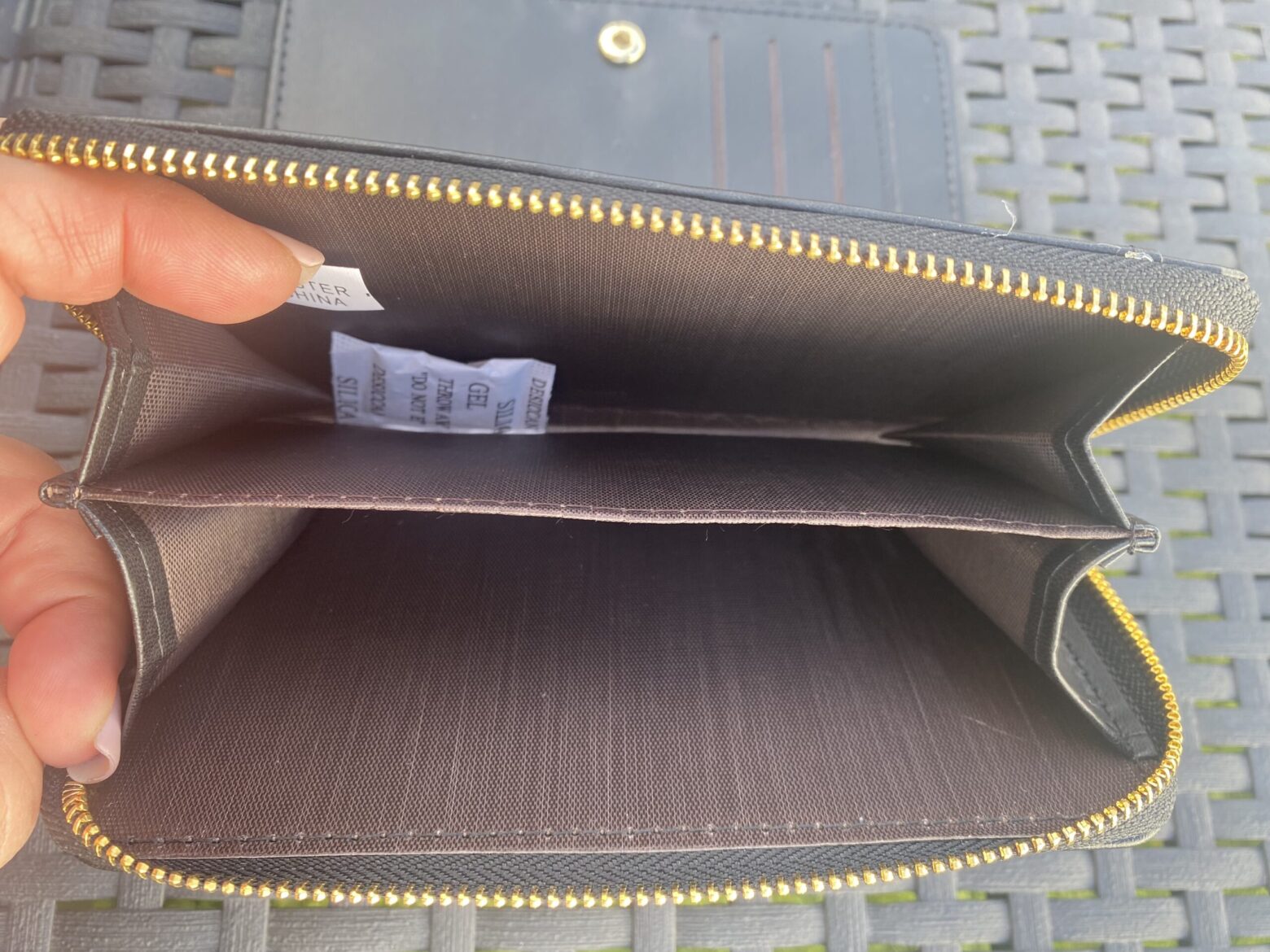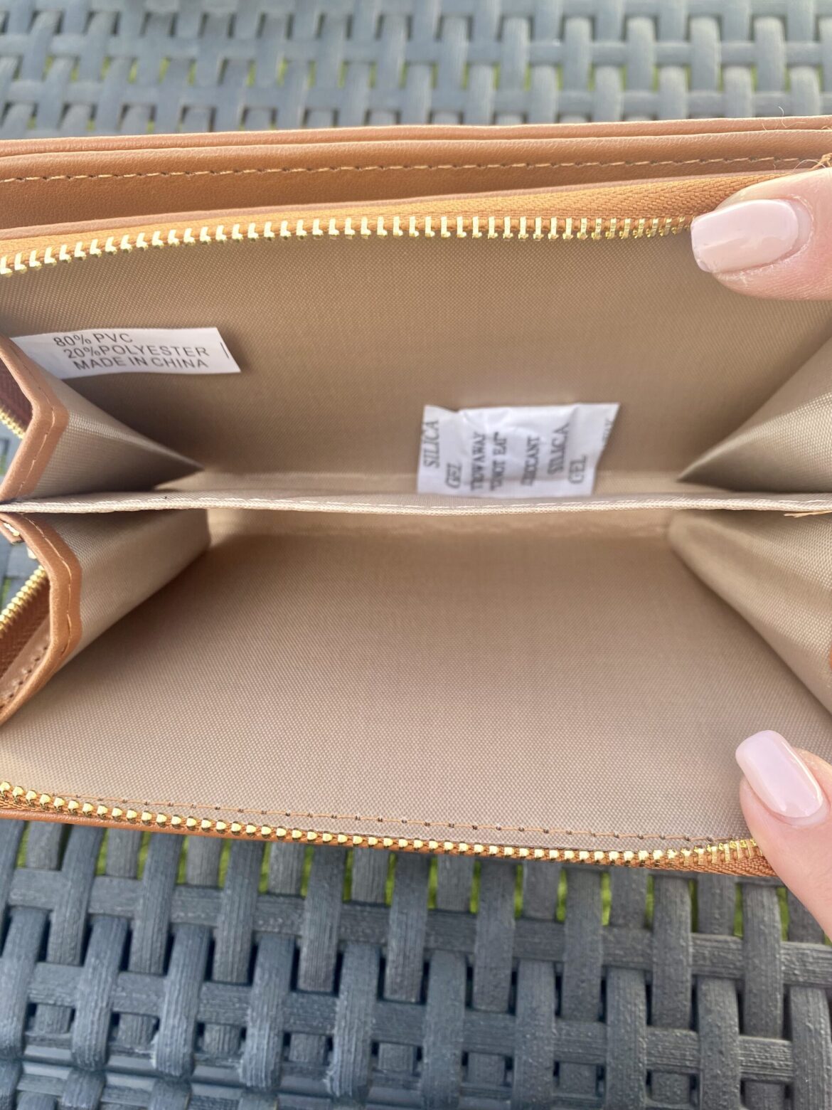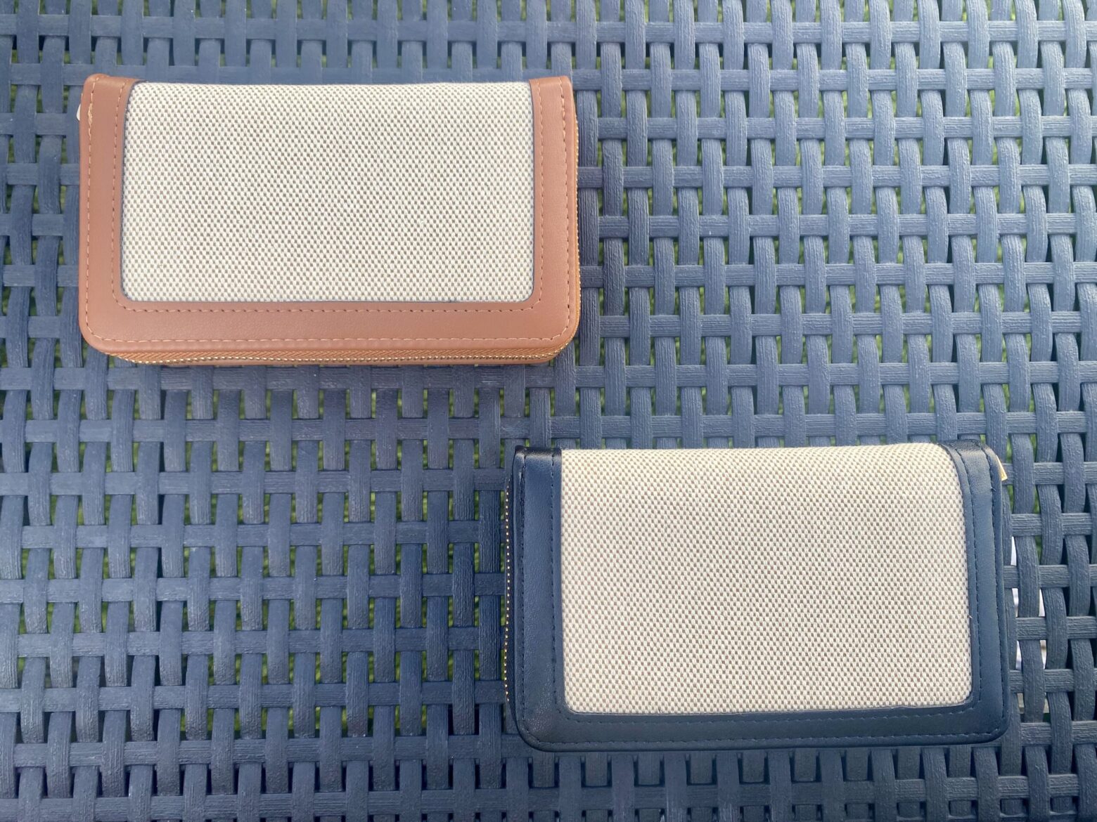 Monedero de dos colores, con varios compartimentos, disponible en beige-negro y beige-marrón