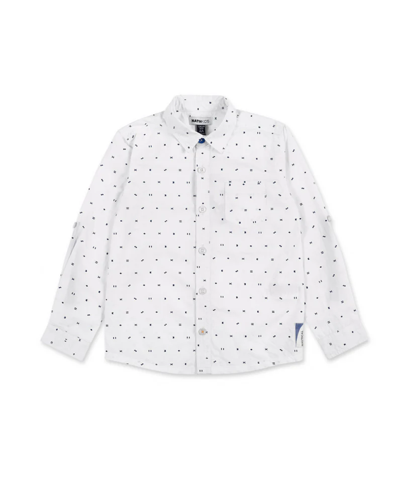 Nathkids Niño Camisa Kayak Club Camisa De Punto, De Color Blanco Con Estampado De Símbolos Náuticos Y Bolsillo Delantero Para Niño