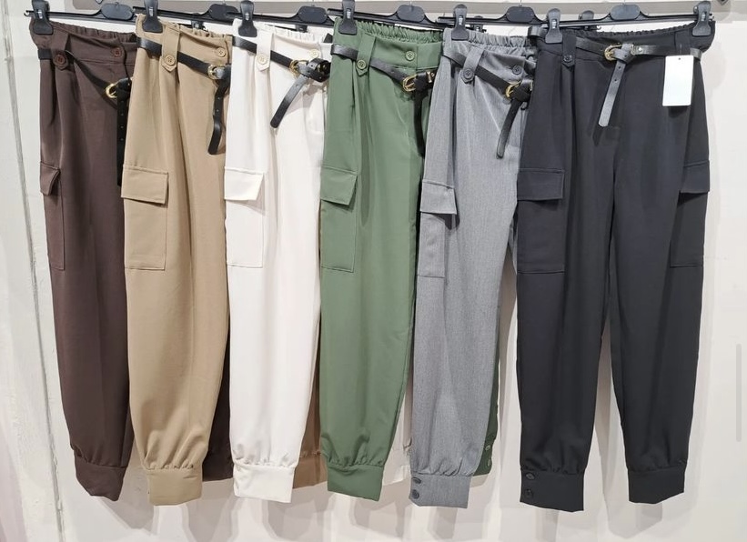 Pantalón cargo con cinturón, en color negro y crema, talla única
