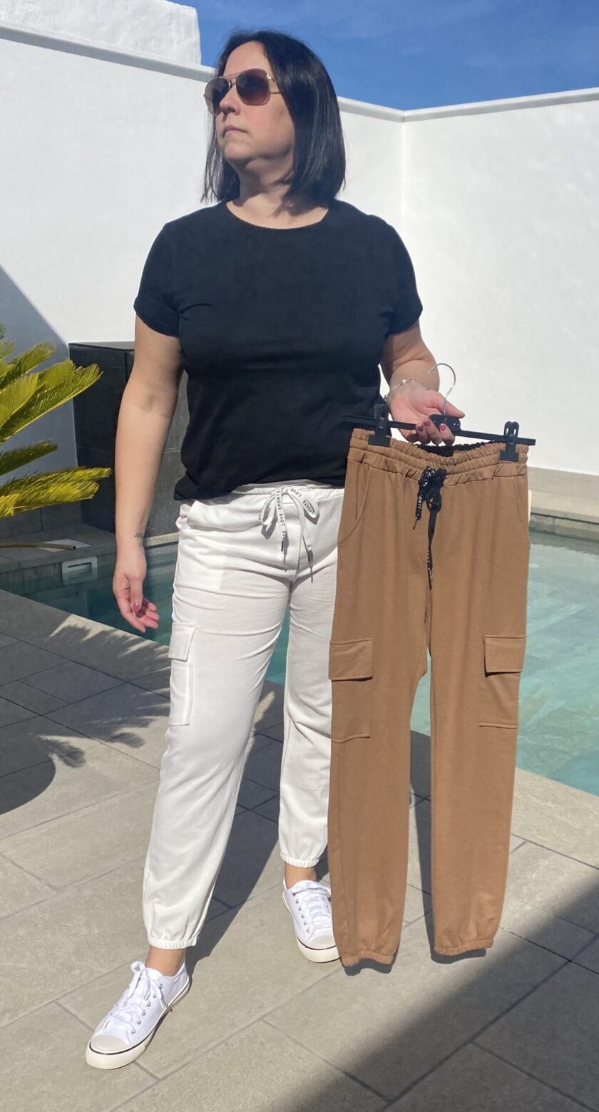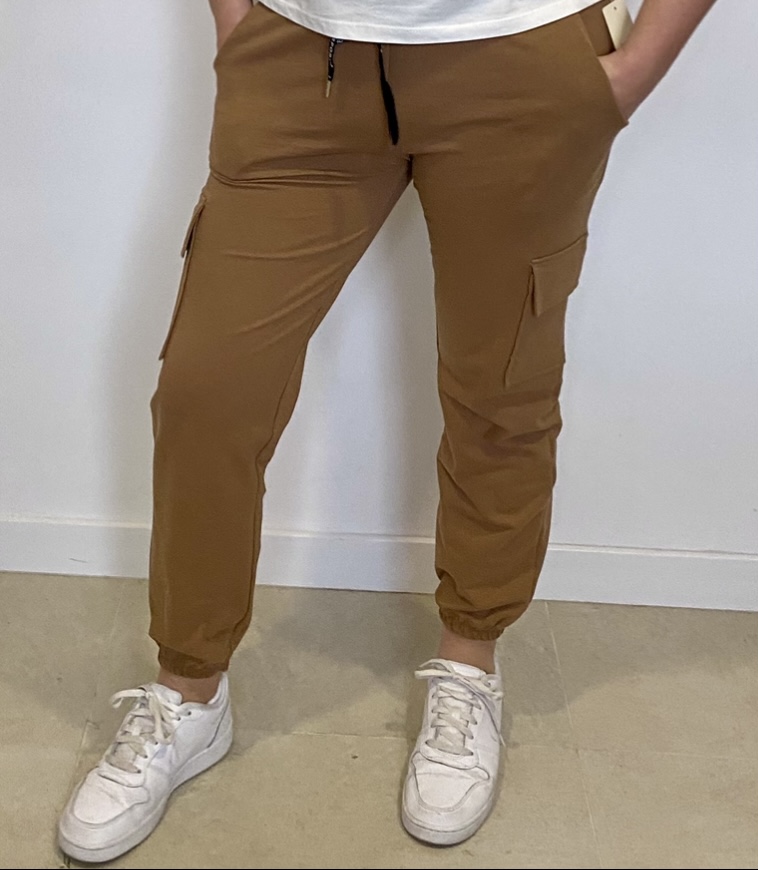 Pantalón cargo sport en color camel y blanco, talla única