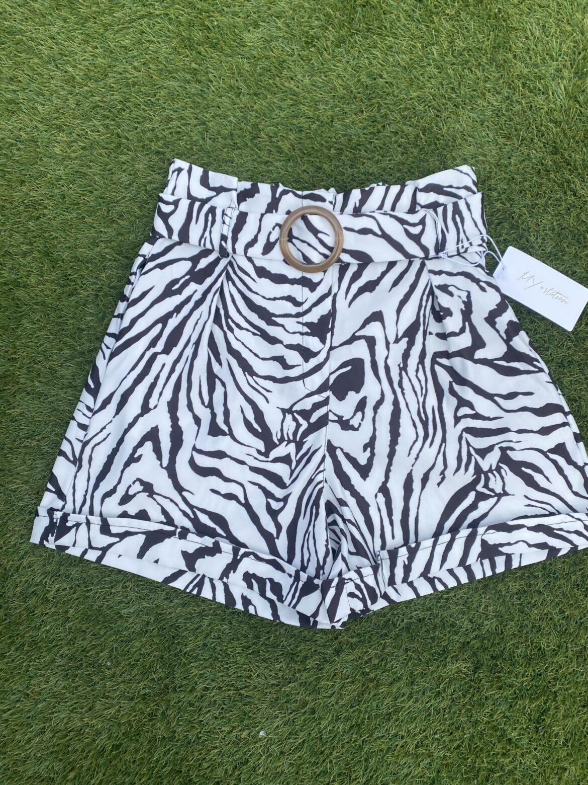 Pantalón corto de cebra con cinturón, cintura elástica, talla única