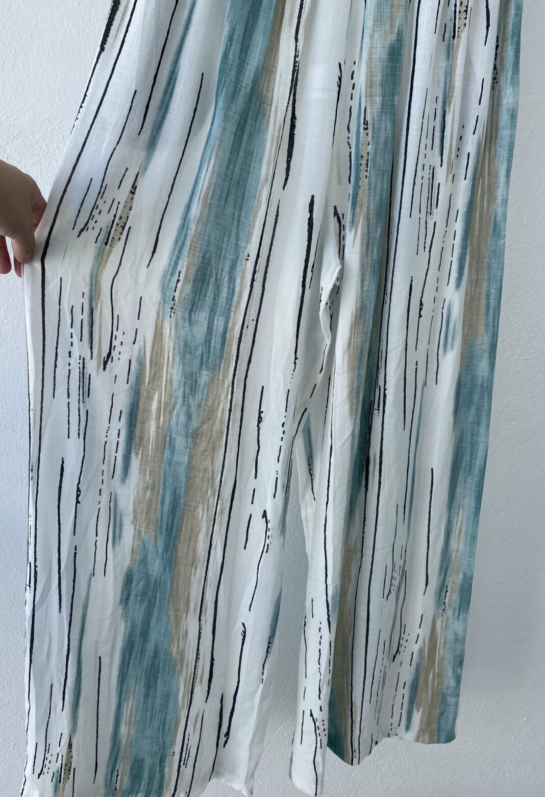 Estampado de colores verde agua, blanco, negro y beige