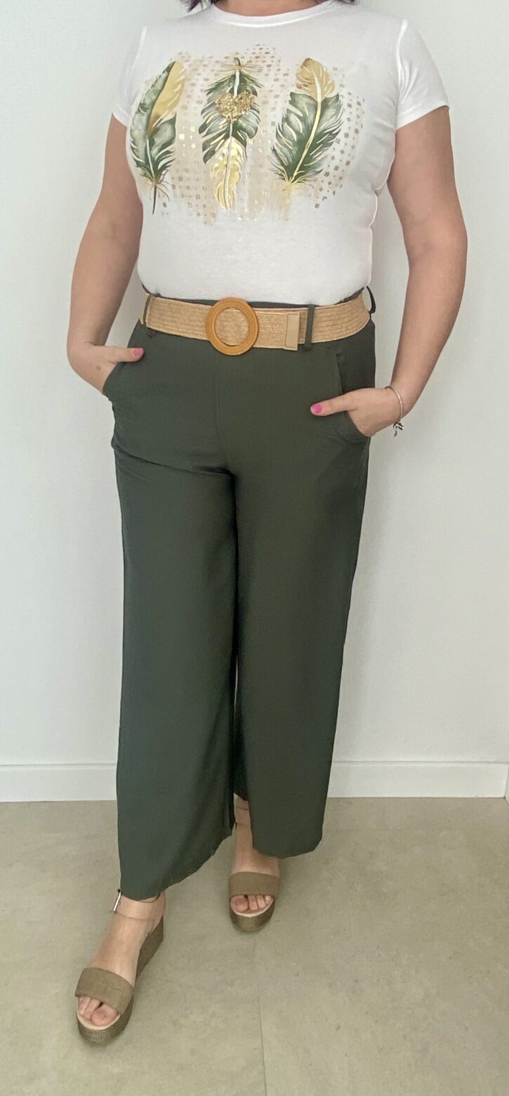 Pantalón de lino en color verde con cinturón, talla única