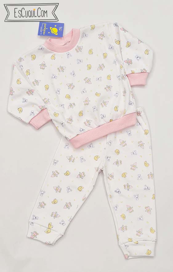 Pijama de niña de dos piezas con estampado de dibujitos infantiles.