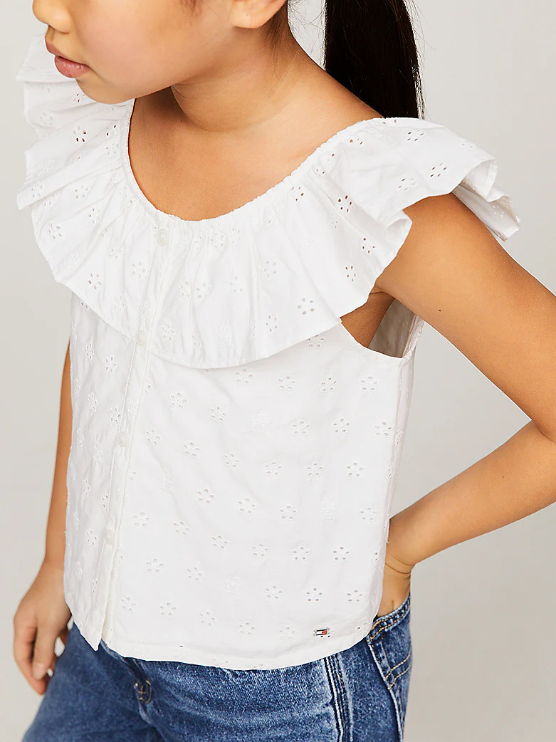Tommy Hilfiger Niña Blusa Broderie Anglaise Frill Top White