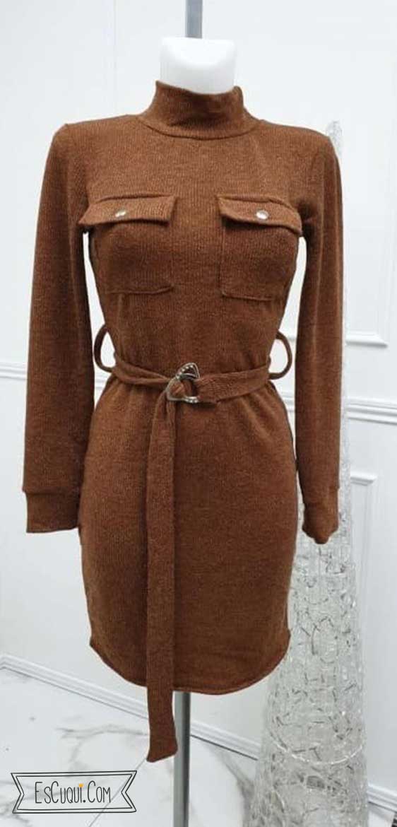 Vestido ceñido de canalé con cinturón y de manga larga. Muy cómodo y ponible en cualquier ocasión.